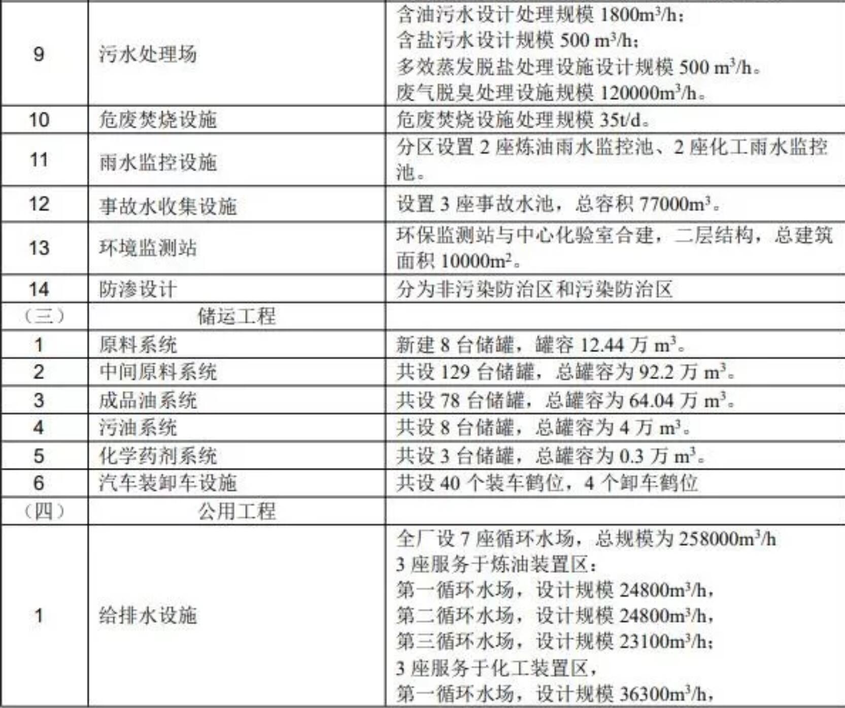 煉化一體化項(xiàng)目包括主體工程、環(huán)保工程、儲(chǔ)運(yùn)工程、公用工程、相應(yīng)配套設(shè)施及依托工程。