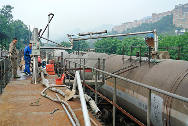 重慶市華鐵物流有限公司(化工鶴管潛液泵為"苯"罐火車卸車的現場照片)