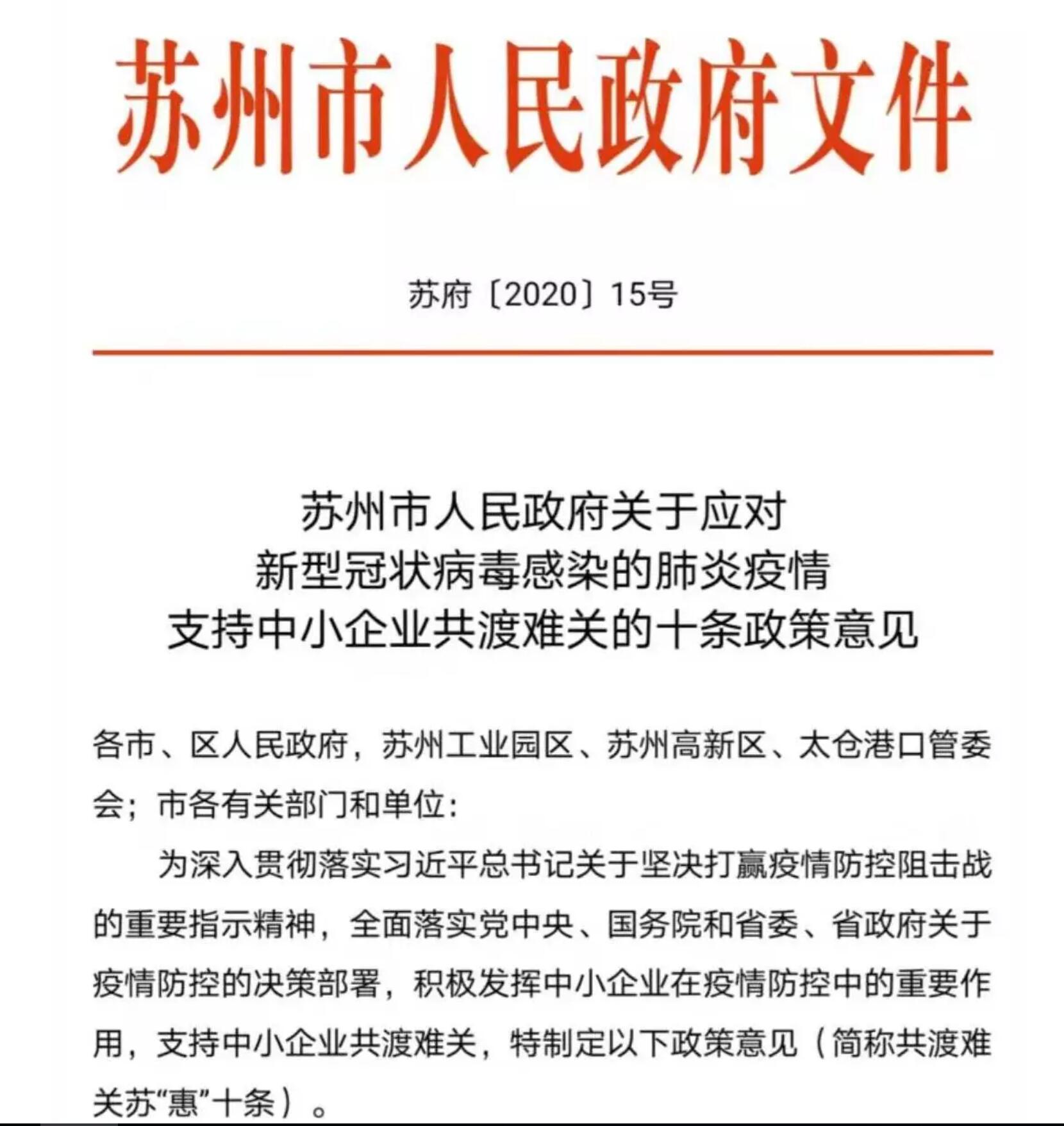 疫情期間蘇州重磅出臺支持中小企業(yè)共渡難關的十條政策