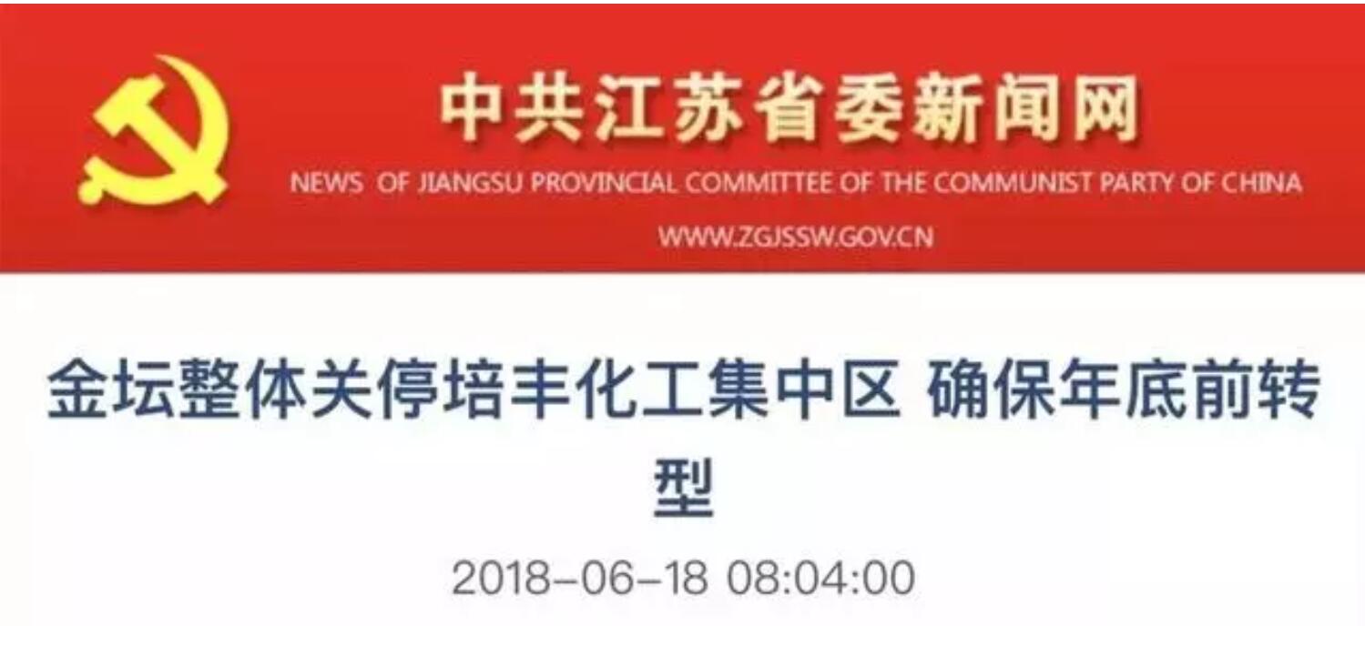 據(jù)當(dāng)?shù)毓俜矫襟w2018年報道顯示,常州市金壇區(qū)于2016年8月1日收到中央環(huán)境保護(hù)督察組交辦的環(huán)境信訪事項后,持續(xù)對園區(qū)企業(yè)進(jìn)行了提標(biāo)改造。作為2016年中央環(huán)保督察交辦的38個化工園區(qū)問題之一,因未能滿足500米衛(wèi)生防護(hù)距離內(nèi)居民全部拆遷的要求,區(qū)委、區(qū)政府決定從根源上消除環(huán)境隱患,結(jié)合將來的區(qū)域發(fā)展規(guī)劃,取消培豐化工集中區(qū)產(chǎn)業(yè)定位,按化工企業(yè)整治的要求,對所有企業(yè)實行關(guān)停。
